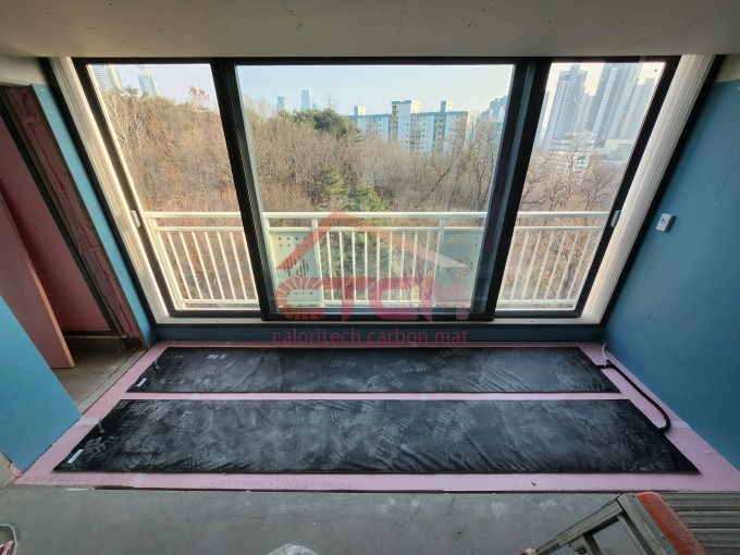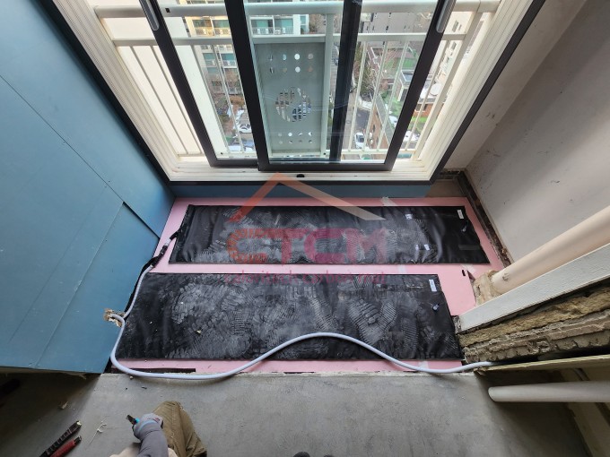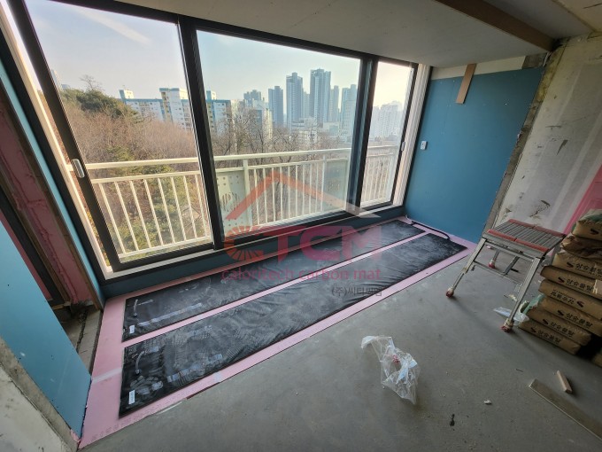청담동에 소재한 구축 아파트 리모델링 현장에 발코니 확장 시공을 위한 초절전온돌매트 설치를 하였습니다.